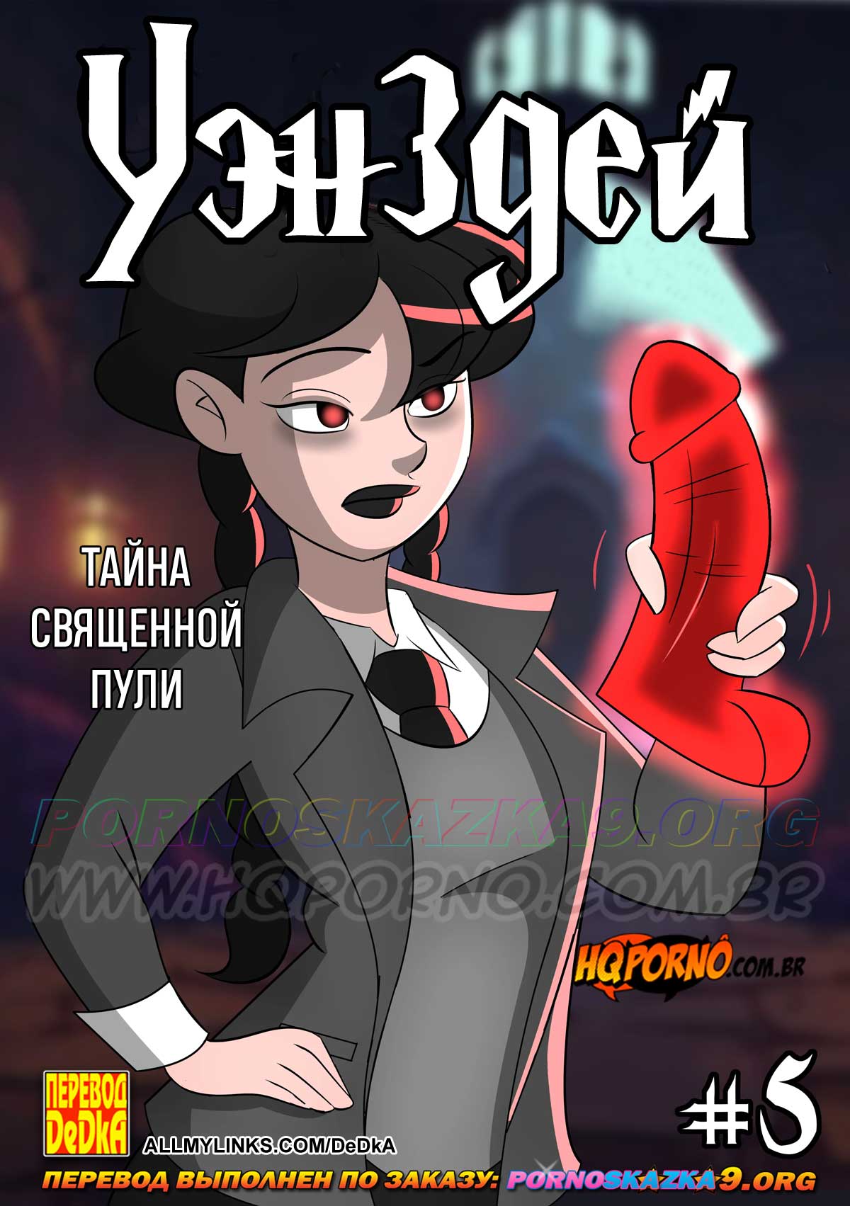 Читать далее 04 Дек 2025 14121 0Порно комикс «Уэнздей. Часть 5. Тайна священной пули.»